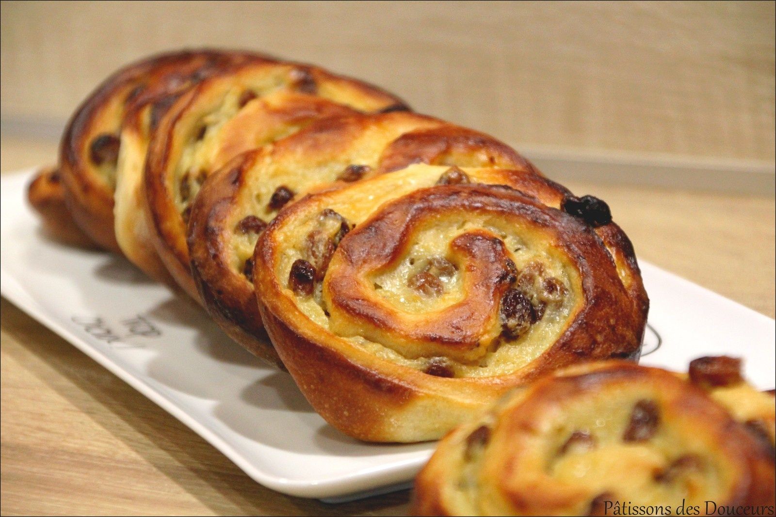 Ces pains aux raisins sont briochés c'est-à-dire que la pâte à brioche remplace la pâte feuilletée traditionnelle. Ils sont délicieux et ont été très appréciés.